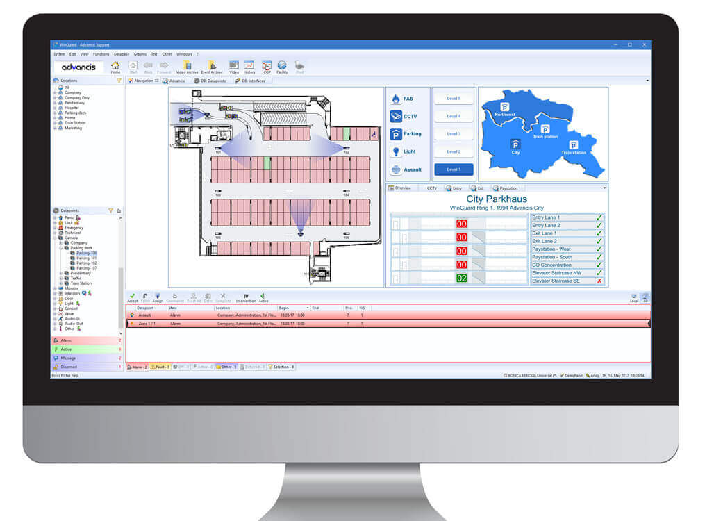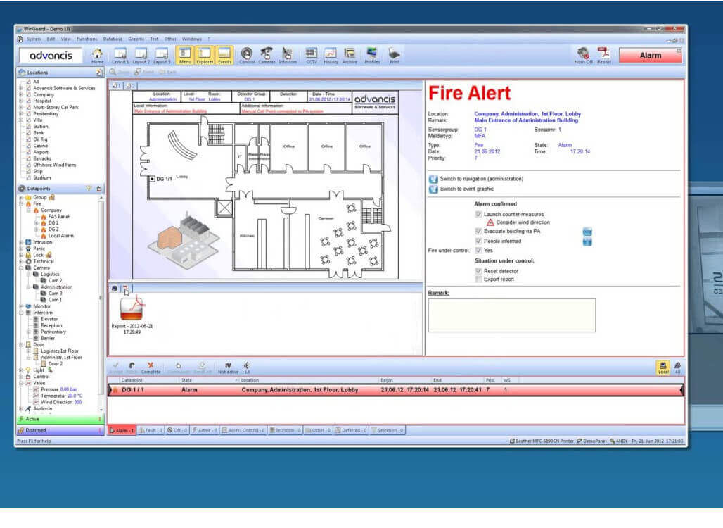 Таким образом гарантируя своим клиентам важные преимущества; совершенствование противопожарных систем; предложение всем остальным клиентам системам единой машины «WinGuard», которая позволит реализовать все сигналы ввода / вывода огня поля на графических картах; без замены существующих заводов. Программное обеспечение используется на промышленных объектах, например, на предприятиях нефтехимии; нефтеперерабатывающие заводы, морские платформы и другие приложения высокого риска.
